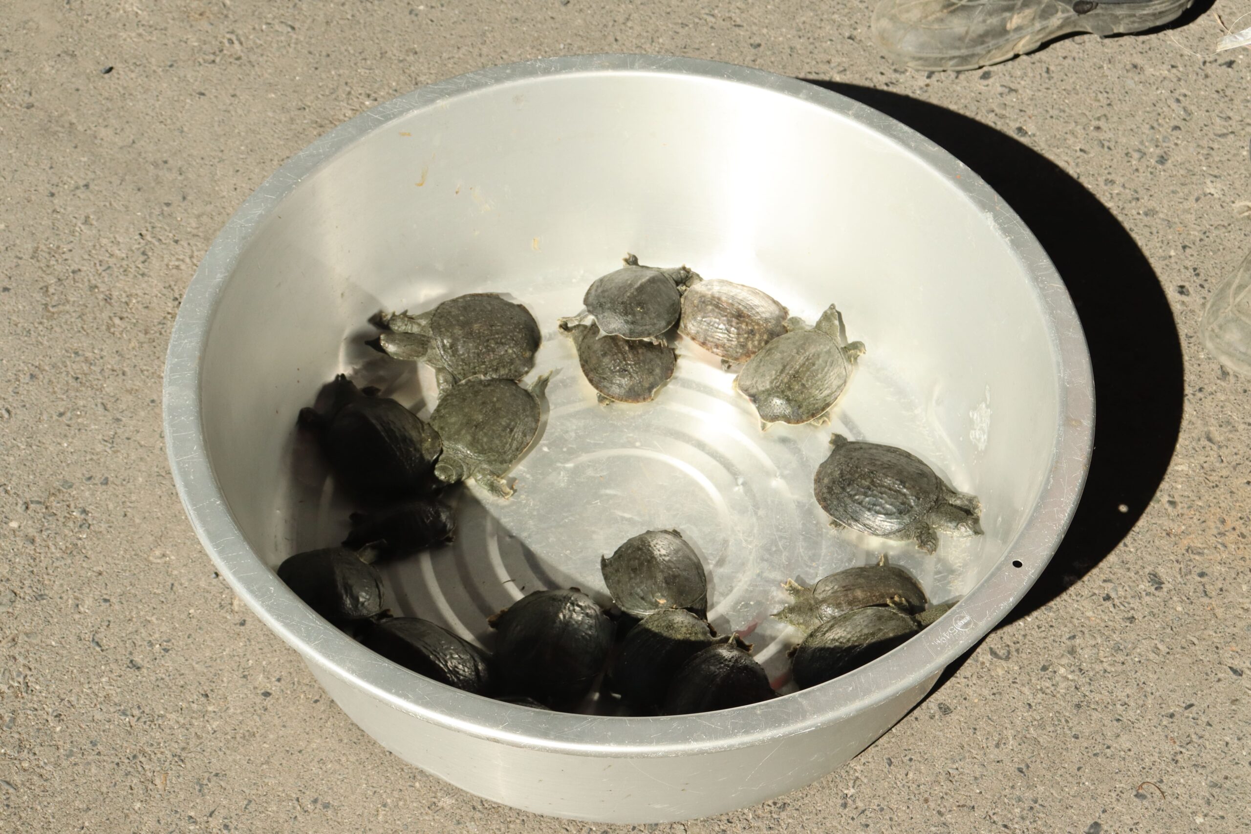 スッポンの子亀放流 約400匹 2~3年で食べごろサイズに成長/岡山・津山市