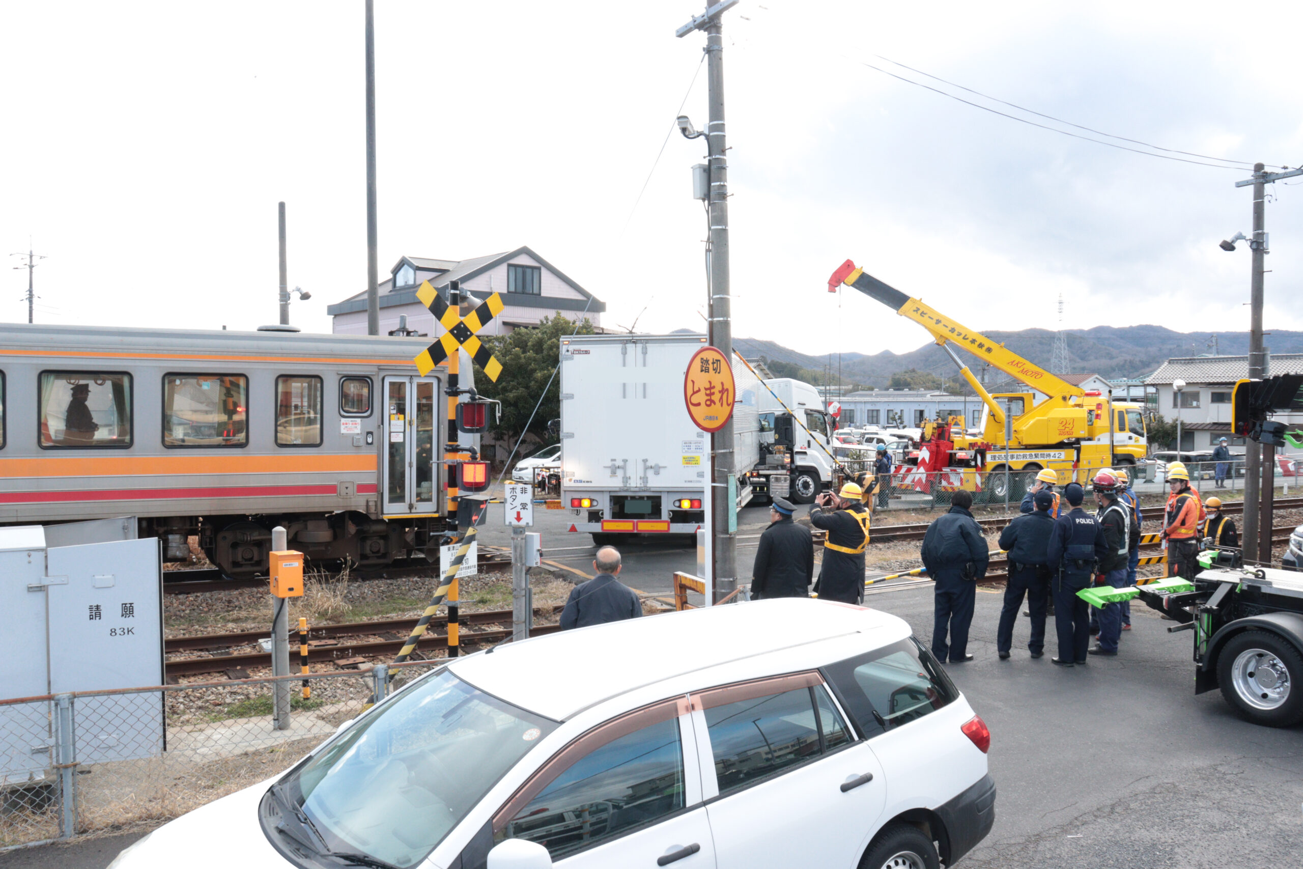 トラックが踏切で立ち往生 けが人はなしも 遅れや運休で約50人に影響/岡山・津山市