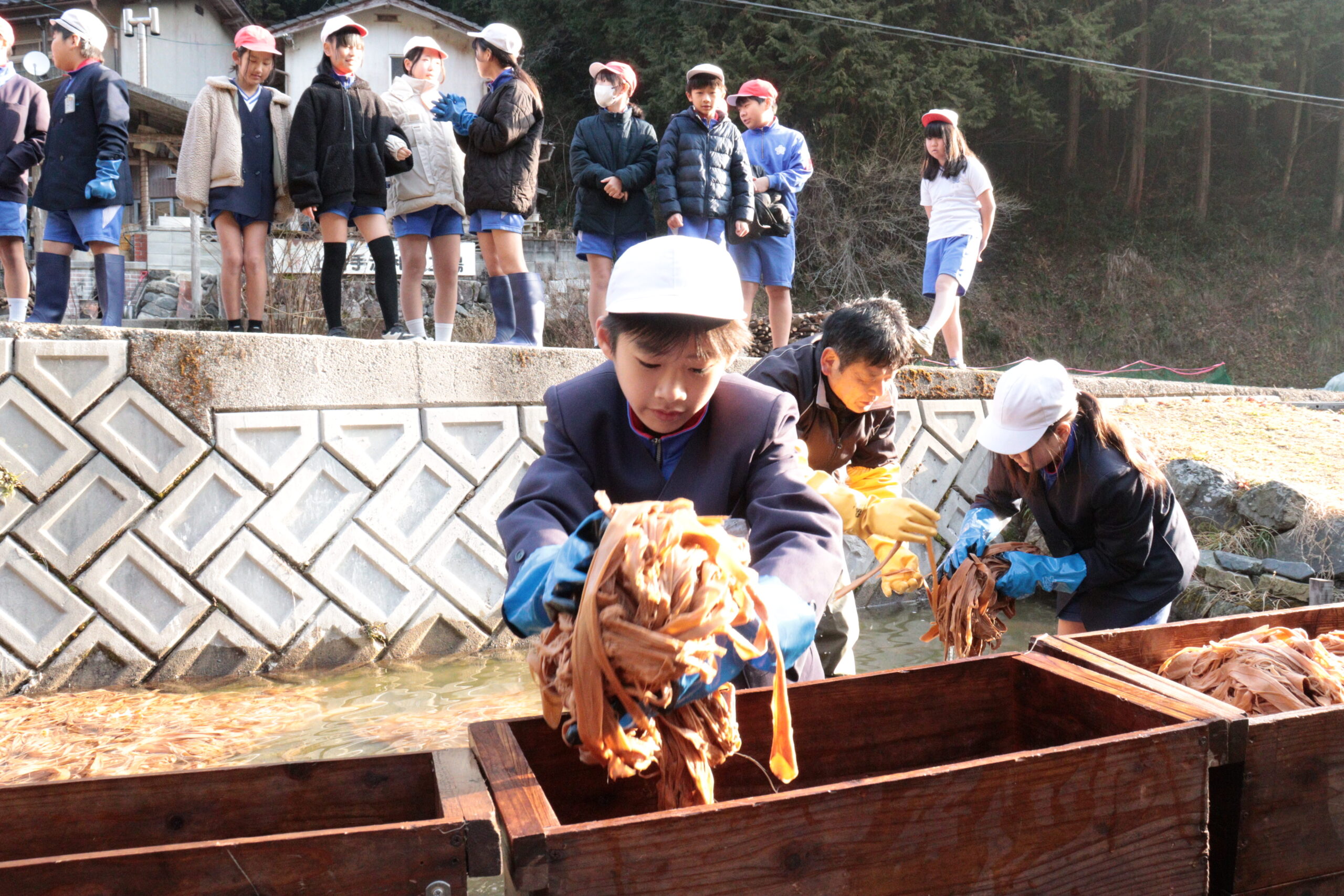 今年最初の「川ざらし」 児童も参加し大変さを体感 手漉和紙工場で/岡山・津山市