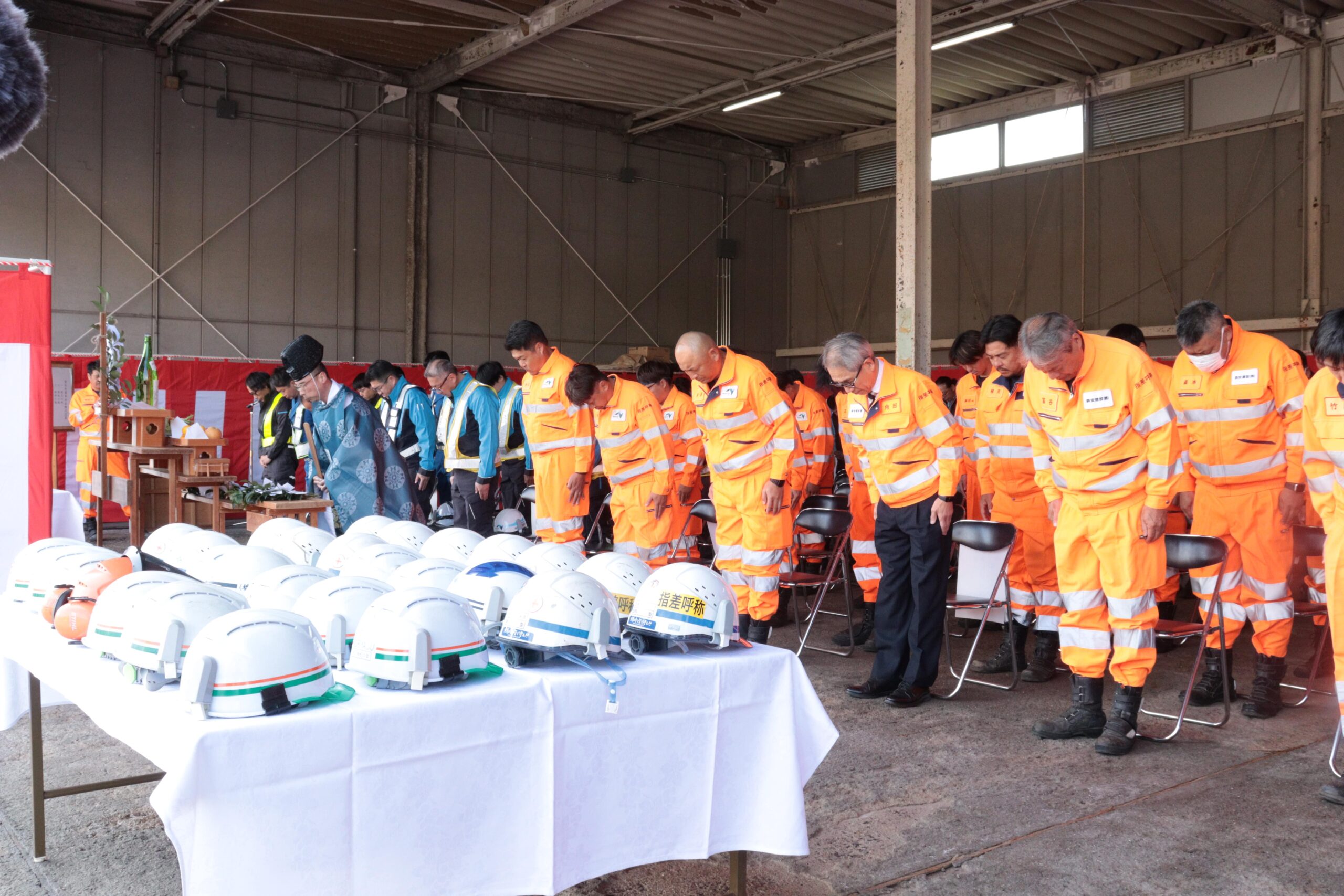 冬場の道路整備に 雪氷作業車両の出動式 津山IC内で/岡山・津山市