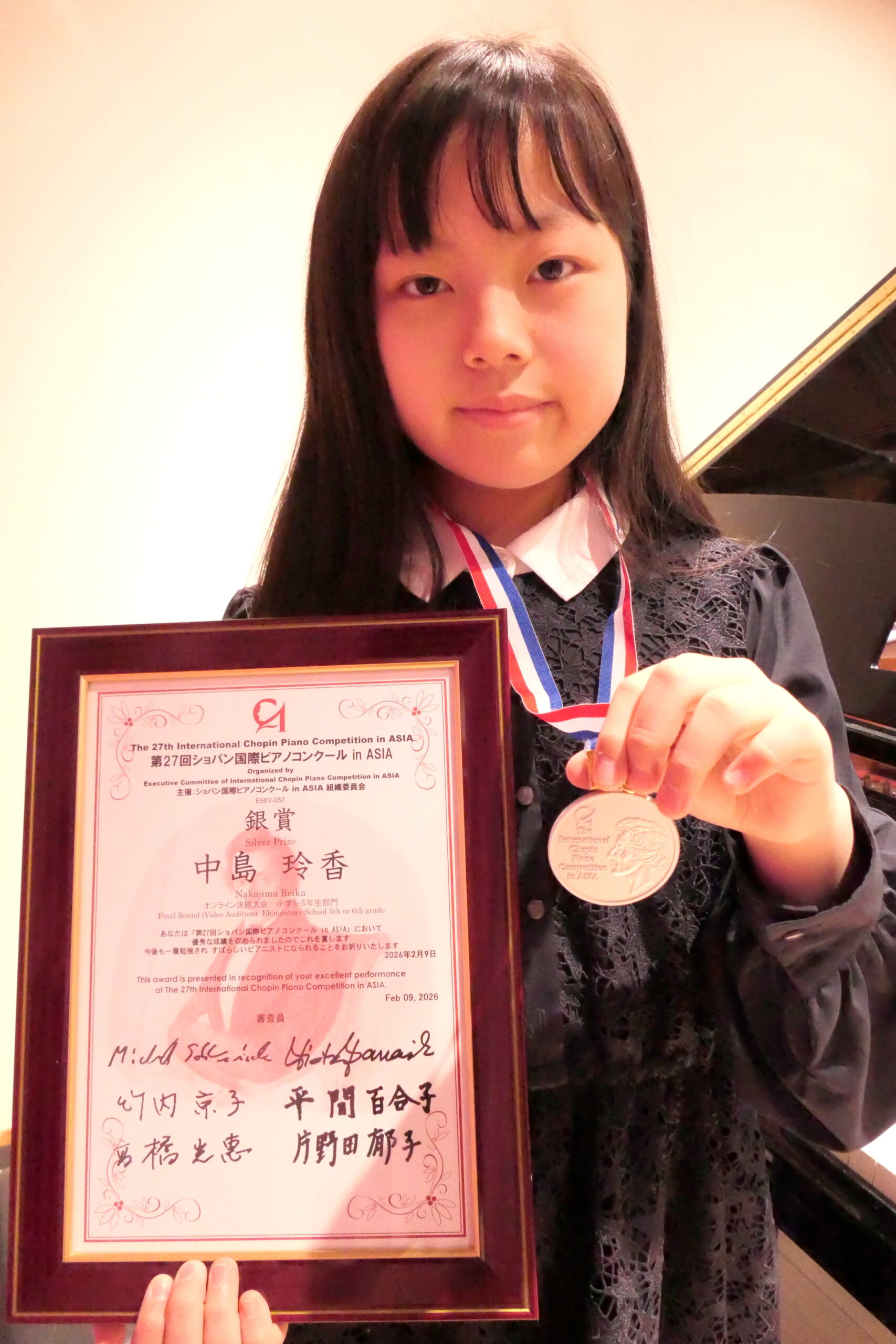 北小5年・中島さん 見事銀賞に輝く ショパン国際オンライン決勝大会で/岡山・津山市