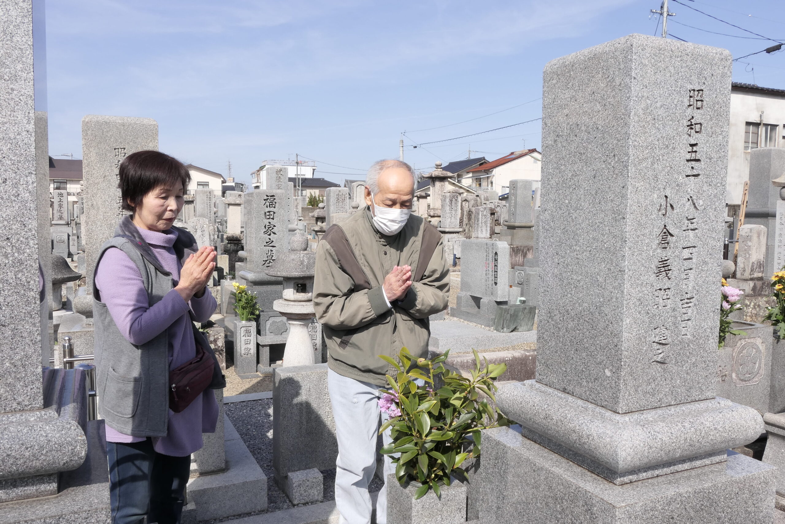 彼岸の入り 日中温かな陽気に 先祖の墓に花と線香供える/岡山・津山市