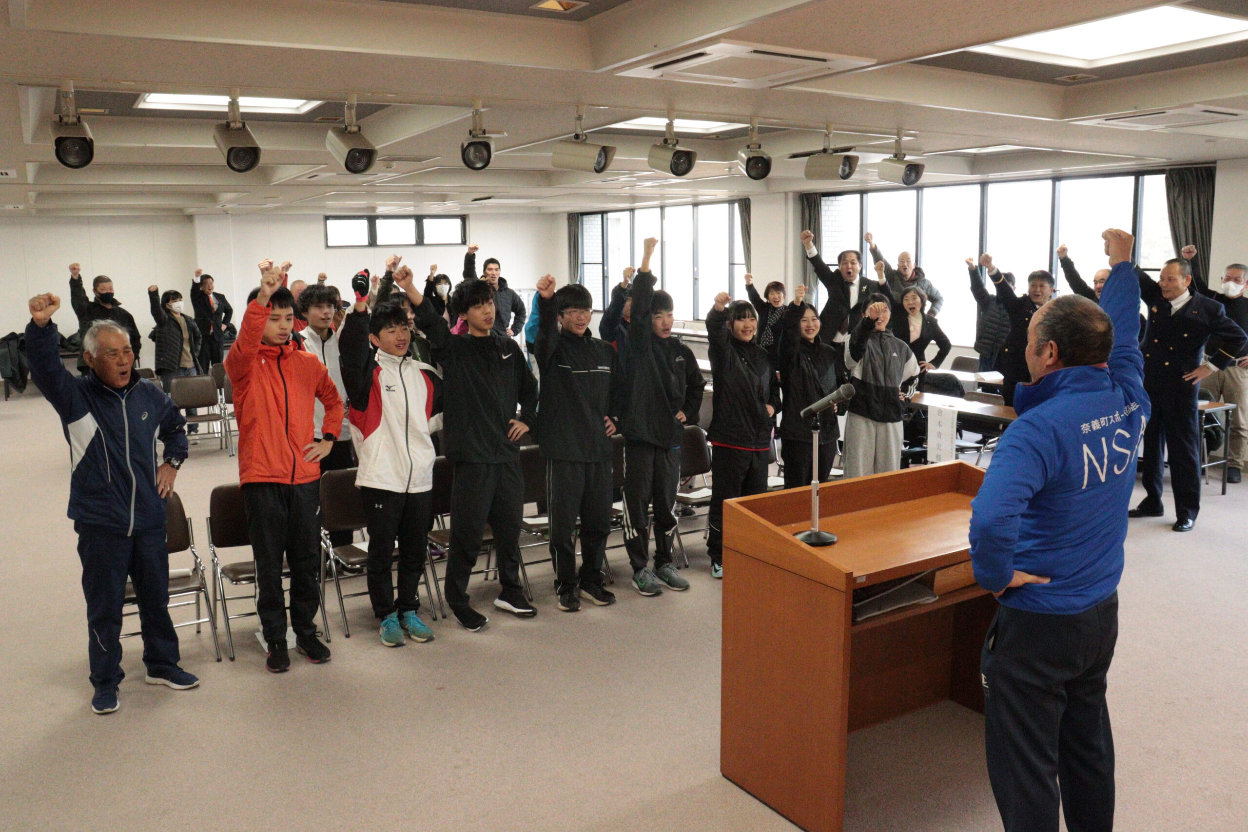 本番での健闘誓う 「晴れの国岡山駅伝競走大会」 頑張ろう三唱で士気高め/岡山・奈義町