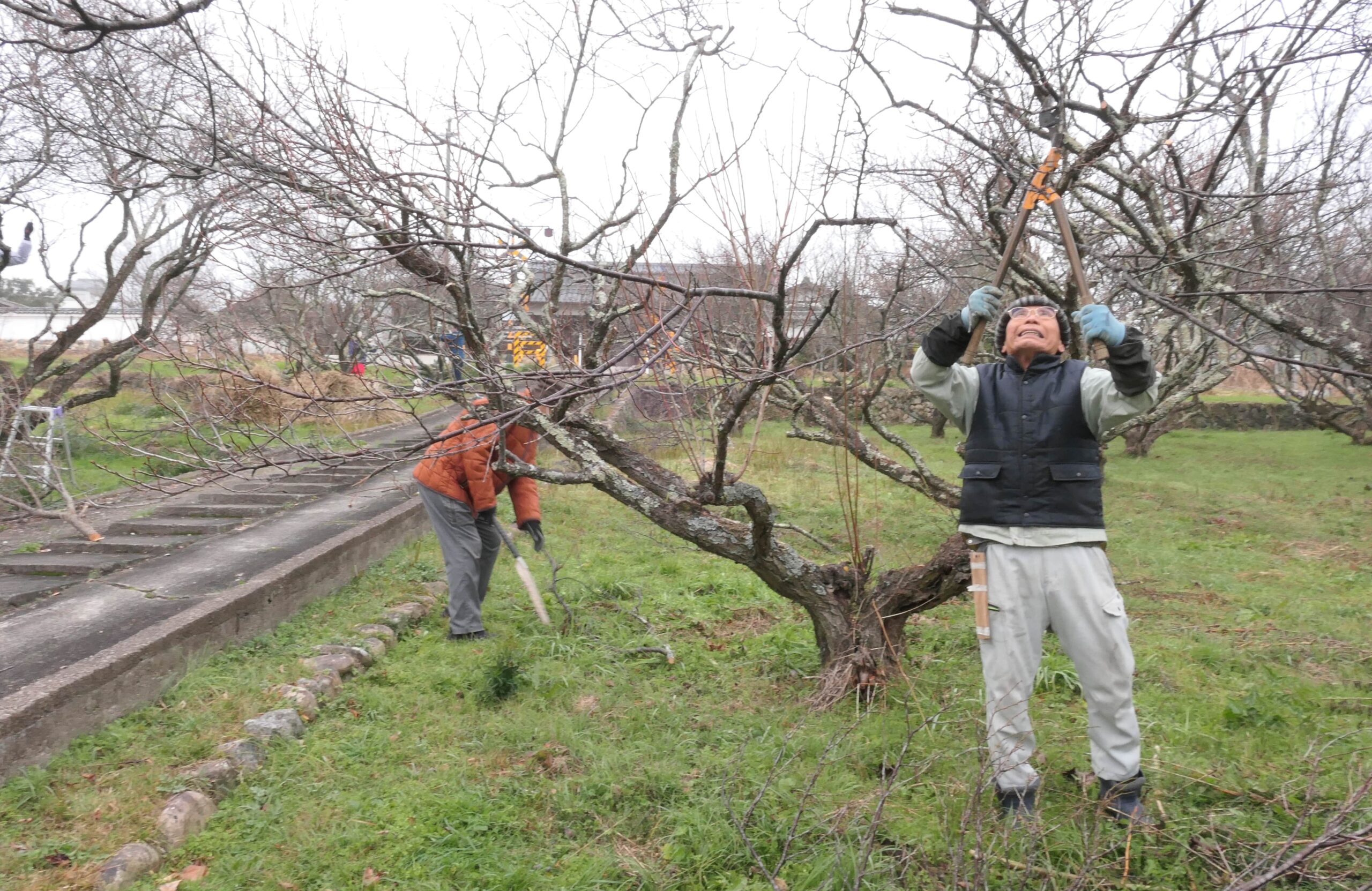 梅の木を剪定 きれいな形保ち健やかに育つよう 地域住民らで励む/岡山・津山市