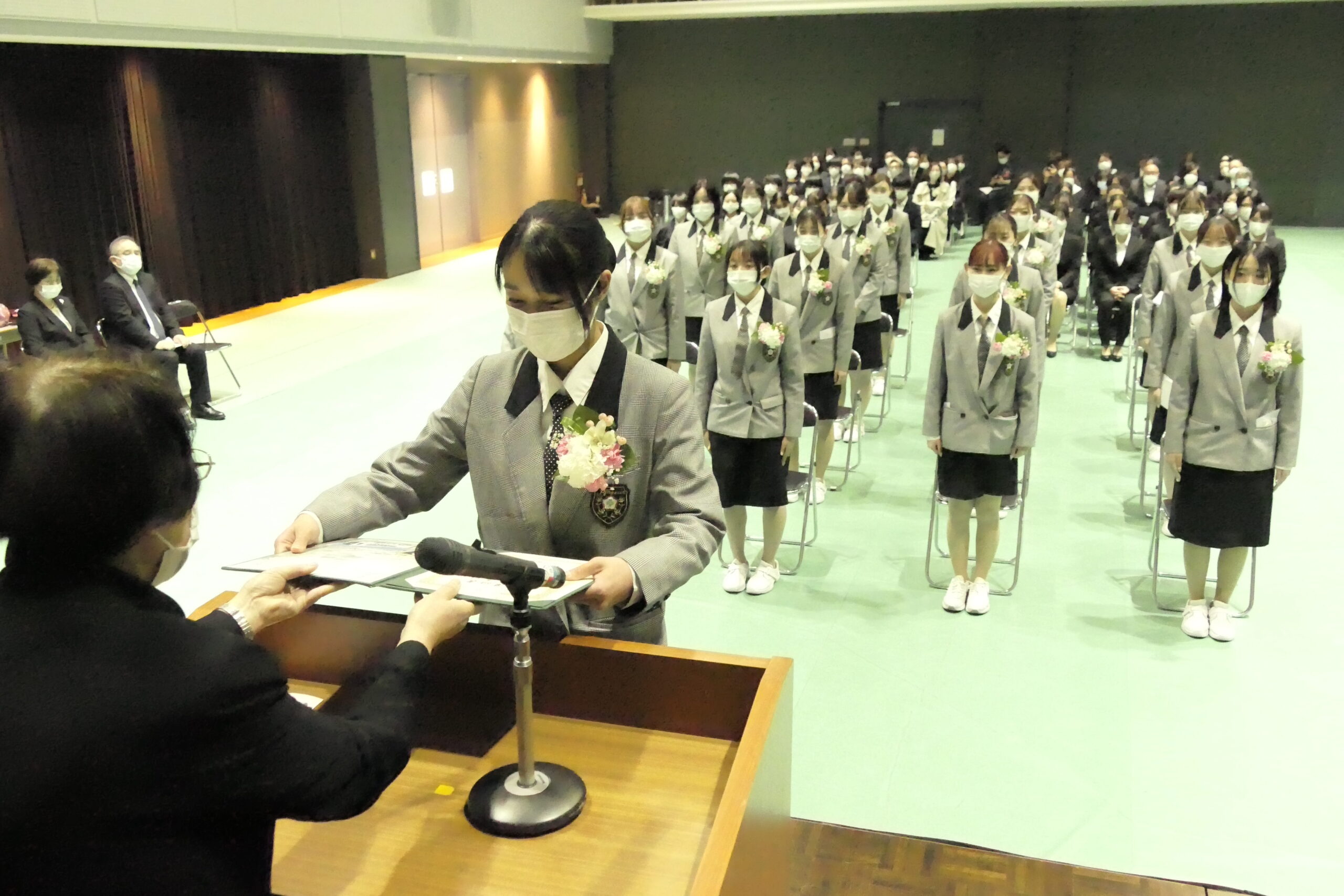 卒業証書を受け取る第36期生=岡山県津山市で