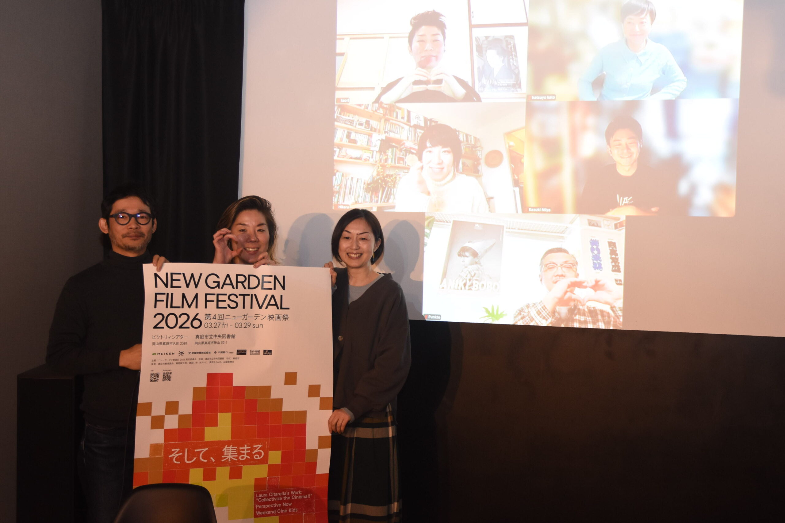 「ニューガーデン映画祭」をPRする実行委メンバー=岡山県真庭市で